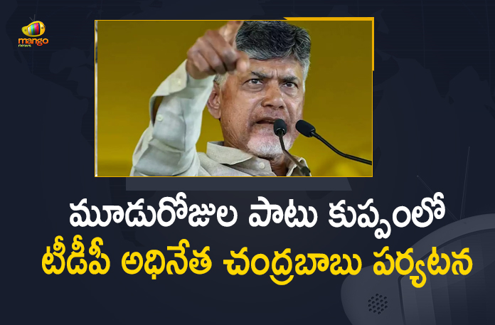 టీడీపీ జాతీయ అధ్యక్షుడు చంద్రబాబు నాయుడు నేటి నుంచి మూడు రోజుల పాటుగా కుప్పంలో పర్యటించనున్నారు. హైదరాబాద్ నుంచి బెంగళూరు వెళ్లి అక్కడి నుంచి రోడ్డు మార్గం ద్వారా చంద్రబాబు కుప్పం చేరుకుంటారు. ఈ పర్యటనలో భాగంగా కుప్పం, శాంతిపురం, రామకుప్పం మండలాలకు చెందిన పార్టీ నేతలతో చంద్రబాబు సమీక్ష సమావేశాలు నిర్వహించనున్నారు.
