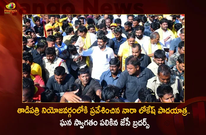 టీడీపీ యువనేత, ఆ పార్టీ జాతీయ ప్రధాన కార్యదర్శి నారా లోకేష్ యువగళం పాదయాత్ర అనంతపురం జిల్లాలో కొనసాగుతోంది. ఈ క్రమంలో మంగళవారం ఉదయం శింగనమల నియోజకవర్గంలోని ఉలికుంటపల్లి విడిది కేంద్రం నుండి 67వ రోజు పాదయాత్రను ప్రారంభించిన లోకేష్.. అనంతరం తాడిపత్రి నియోజకవర్గంలోకి ప్రవేశించారు. ఈ సందర్భంగా నారా లోకేష్కు టీడీపీ సీనియర్ నేతలు జేసీ బ్రదర్స్ ఘన స్వాగతం పలికారు. మాజీ మంత్రి జేసీ దివాకర్ రెడ్డి, మాజీ ఎమ్మెల్యే జేసీ ప్రభాకర్ రెడ్డి, మాజీ ఎమ్మెల్సీ దీపక్ రెడ్డి, జేసీ అస్మిత్ రెడ్డి తదితరులు ఎదురేగి స్వాగతం పలికారు. అలాగే వీరితో పాటు పార్టీ స్థానిక నాయకులు, కార్యకర్తలు పెద్ద సంఖ్యలో తాడిపత్రికి చేరుకుని లోకేష్కు పూలమాలతో స్వాగతం చెప్పారు.