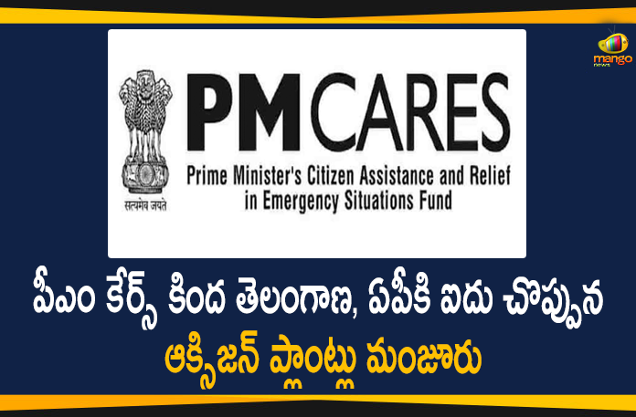 ప్రధానమంత్రి సిటిజన్ అసిస్టెన్స్ అండ్ రిలీఫ్ ఇన్ ఎమర్జెన్సీ సిట్యుయేషన్స్ (పీఎం కేర్స్) ఫండ్స్ ట్రస్ట్ నుంచి దేశవ్యాప్తంగా 32 రాష్ట్రాలు/కేంద్రపాలిత ప్రాంతాల్లో 162 ఆక్సిజన్ జనరేషన్ ప్లాంట్స్ను ఏర్పాటు చేసేందుకు రూ.201.58 కోట్లను కేంద్ర ప్రభుత్వం కేటాయించింది. కేంద్ర ఆరోగ్య, కుటుంబ సంక్షేమశాఖ పరిధిలోని స్వయంప్రతిపత్తి గల సెంట్రల్ మెడికల్ సప్లై స్టోర్ (సిఎమ్ఎస్ఎస్) వీటిని దేశవ్యాప్తంగా ఏర్పాటు చేయనుంది. ఈ 162 ప్లాంట్ల ద్వారా మొత్తం 154.19 మెట్రిక్ టన్నుల సామర్ధ్యంతో కూడిన ఆక్సిజన్ ప్లాంట్స్ ను ఏర్పాటు చేయనున్నారు. ఈ ప్లాంటులు ఏర్పాటు చేసే ప్రభుత్వ ఆసుపత్రులను, సంబంధిత రాష్ట్రాలు/కేంద్రపాలిత ప్రాంతాలను సంప్రదించి నిర్ణయిస్తామని చెప్పారు. అందులో భాగంగా తెలంగాణ రాష్ట్రానికి ఐదు, ఆంధ్రప్రదేశ్ రాష్ట్రానికి ఐదు ఆక్సిజన్ జనరేషన్ ప్లాంట్స్ ను కేటాయించారు. ఉత్తరప్రదేశ్ కు అత్యధికంగా 14, మహారాష్ట్రకు 10 కేటాయించారు.