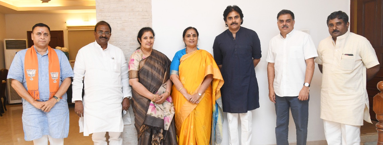 తిరుపతి లోక్సభ నియోజకవర్గానికి జరగనున్న ఉపఎన్నికలో బీజేపీ-జనసేన ఉమ్మడి అభ్యర్థిగా మాజీ ఐఏఎస్ అధికారిణి రత్నప్రభ పోటీచేస్తున్న సంగతి తెలిసిందే. ఇరు పార్టీల పొత్తులో భాగంగా ఈ ఉపఎన్నికలో జనసేన పార్టీ బీజేపీ అభ్యర్థిని బలపరుస్తుంది. ఈ నేపథ్యంలో శుక్రవారం సాయంత్రం హైదరాబాద్ లో జనసేన పార్టీ అధ్యక్షుడు పవన్ కళ్యాణ్ తో ఎంపీ అభ్యర్థి రత్నప్రభ సమావేశమయ్యారు. ఈ సమావేశంలో జనసేన పీఏసీ చైర్మన్ నాదెండ్ల మనోహర్, బీజేపీ జాతీయప్రధాన కార్యదర్శి పురందేశ్వరి, ఏపీ రాష్ట్ర బీజేపీ అధ్యక్షుడు సోము వీర్రాజు, బీజేపీ రాష్ట్ర వ్యవహారాల కోఇన్చార్జి సునీల్ థియోదర్, బీజేపీ రాష్ట్ర జనరల్ సెక్రెటరీ మధుకర్ కూడా పాల్గొన్నారు. సుమారు గంటపాటు జరిగిన ఈ సమావేశంలో తిరుపతి నియోజకవర్గ పరిధిలో ప్రచారం, అనుసరించాల్సిన వ్యూహాలుపై చర్చించినట్టు తెలుస్తుంది.