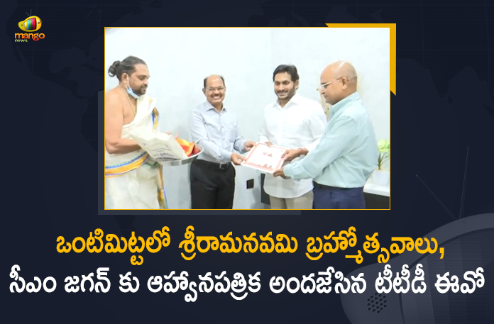 వైఎస్ఆర్ కడప జిల్లా ఒంటిమిట్టలోని శ్రీ కోదండరామస్వామివారి ఆలయంలో ఏప్రిల్ 9 నుండి 19వ తేదీ వరకు శ్రీరామనవమి బ్రహ్మోత్సవాలు జరగనున్నాయి. ఒంటిమిట్టలో శ్రీరామనవమి బ్రహ్మోత్సవాలకు ఏప్రిల్ 9, శనివారం సాయంత్రం శాస్త్రోక్తంగా అంకురార్పణ జరగనున్నట్టు తిరుమల తిరుపతి దేవస్థానం (టీటీడీ) ఒక ప్రకటనలో వెల్లడించింది. ఈ నేపథ్యంలో శుక్రవారం నాడు తాడేపల్లిలోని సీఎం క్యాంపు కార్యాలయంలో ఆంధ్రప్రదేశ్ ముఖ్యమంత్రి వైఎస్ జగన్ మోహన్ రెడ్డిని టీటీడీ ఈవో డాక్టర్ కేఎస్ జవహర్రెడ్డి, ఒంటిమిట్ట ఆలయ డిప్యూటీ ఈవో డాక్టర్ రమణ ప్రసాద్ కలిసి ఒంటిమిట్టలో జరిగే శ్రీ సీతారామ కళ్యాణ మహోత్సవ ఆహ్వన శుభపత్రికను అందజేశారు.