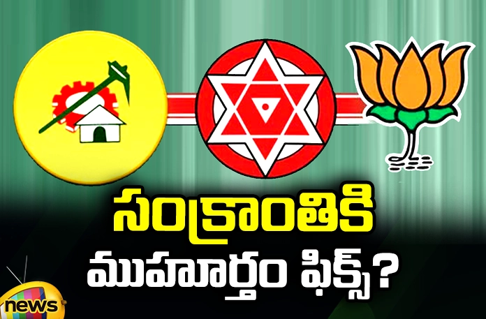 సంక్రాంతి తర్వాత టీడీపీ, జనసేన, బీజేపీ పార్టీలు ఒక్కటి కానున్నాయని, దీనికి సంబంధించిన ముహూర్తం కూడా ఖరారు చేసినట్లు వార్తలు వినిపిస్తున్నాయి. ఇప్పటికే ఈ పొత్తు విషయాన్ని ఏపీ రాష్ట్ర బీజేపీ నేతలు ఢిల్లీ కేంద్ర పెద్దల దృష్టికి తీసుకెళ్లారని తెలుస్తోంది.