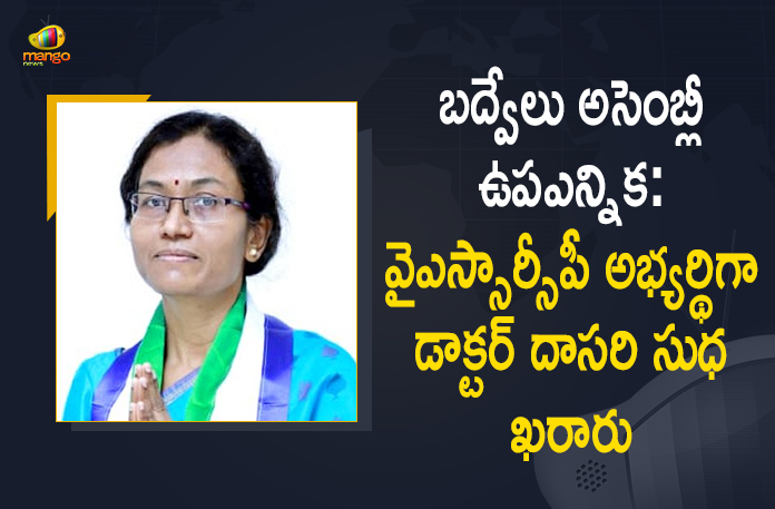 కడప జిల్లాలోని బద్వేలు అసెంబ్లీ నియోజకవర్గానికి అక్టోబర్ 30న ఉపఎన్నిక నిర్వహించనున్నట్టు కేంద్ర ఎన్నికల సంఘం ప్రకటించింది. బద్వేలు వైఎస్సార్సీపీ ఎమ్మెల్యే డాక్టర్ వెంకట సుబ్బయ్య మరణించడంతో అక్కడ ఉపఎన్నిక జరగనుంది. దీంతో అక్టోబర్ 1న ఎన్నికల నోటిఫికేషన్ విడుదల కానుండగా, అక్టోబర్ 30న పోలింగ్, నవంబర్ 2న ఓట్ల లెక్కింపు చేపట్టనున్నారు. ఈ నేపథ్యంలో బద్వేలు ఉపఎన్నికకు అధికార వైఎస్సార్సీపీ తమ అభ్యర్థిని ప్రకటించింది. దివంగత ఎమ్మెల్యే డాక్టర్ వెంకట సుబ్బయ్య భార్య డాక్టర్ దాసరి సుధను వైఎస్సార్సీపీ అభ్యర్థిగా పార్టీ అధ్యక్షుడు, ముఖ్యమంత్రి వైఎస్ జగన్ మోహన్ రెడ్డి రెడ్డి ఎంపిక చేసినట్టు ఏపీ ప్రభుత్వ సలహాదారు సజ్జల రామకృష్ణారెడ్డి ప్రకటించారు. ఆమె ఎమ్మెల్యే అభ్యర్థిగా తొలిసారి పోటీలో ఉండబోతున్నారు.