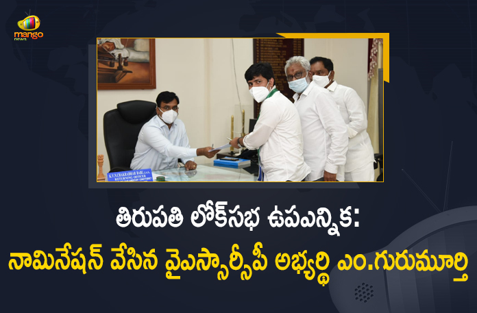 ఆంధ్రప్రదేశ్ రాష్ట్రంలోని తిరుపతి లోక్సభ ఉపఎన్నికకు వైఎస్ఆర్ కాంగ్రెస్ పార్టీ అభ్యర్థి డాక్టర్ ఎం.గురుమూర్తి సోమవారం నాడు నామినేషన్ దాఖలు చేశారు. నెల్లూరు కలెక్టరేట్ లో కలెక్టర్ చక్రధర్ బాబుకు నామినేషన్ పత్రాలు అందజేశారు. ముందుగా నామినేషన్ సందర్భంగా వీఆర్సీ కూడలి నుంచి కలెక్టరేట్ వరకు పార్టీ నాయకులు, కార్యకర్తలతో కలిసి భారీ ర్యాలీ నిర్వహించారు. డాక్టర్ ఎం.గురుమూర్తి నామినేషన్ కార్యక్రమంలో టీటీడీ చైర్మన్ వైవీ సుబ్బారెడ్డి, రాష్ట్రమంత్రులు పెద్దిరెడ్డి రామచంద్రారెడ్డి, అనిల్ కుమార్ యాదవ్, నారాయణ స్వామి, మేకపాటి గౌతమ్ రెడ్డి, ఆదిమూలపు సురేష్, కన్నబాబు, కొడాలి నాని, పేర్నినాని సహా జిల్లా ఎమ్మెల్యేలు, పలువురు నాయకులు పాల్గొన్నారు.