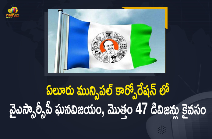 పశ్చిమగోదావరి జిల్లాలోని ఏలూరు మున్సిపల్ కార్పోరేషన్ ఎన్నికల్లో వైఎస్సార్సీపీ ఘనవిజయం సాధించింది. ఏలూరు కార్పోరేషన్ ఓట్ల లెక్కింపుకు రాష్ట్ర ఎన్నికల సంఘం (ఎస్ఈసీ) ఆదేశాలు ఇవ్వడంతో ఆదివారం నాడు ఓట్ల లెక్కింపు ప్రక్రియ నిర్వహించి, ఫలితాలను వెల్లడించారు. ఏలూరులో మొత్తం 50 డివిజన్లలో మూడు డివిజన్లను వైఎస్సార్సీపీ ముందుగానే ఏకగ్రీవంగా కైవసం చేసుకుంది. దీంతో 47 డివిజన్లకి మార్చి 10, 2021న ఎన్నికలు జరిగాయి. 47 స్థానాలకు సంబంధించి తాజాగా చేపట్టిన ఓట్ల లెక్కింపులో 43 డివిజన్లలో వైఎస్సార్సీపీ అభ్యర్థులు భారీ మెజారిటీలతో విజయం సాధించారు. ఏకగ్రీవంతో కలిపి మొత్తం 50 డివిజన్లకు గానూ 47 డివిజన్లను వైఎస్సార్సీపీ కైవసం చేసుకుంది.