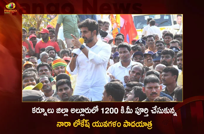టీడీపీ యువనేత, ఆ పార్టీ జాతీయ ప్రధాన కార్యదర్శి నారా లోకేష్ యువగళం పాదయాత్ర 95వ రోజుకి చేరుకుంది. ప్రస్తుతం కర్నూలు జిల్లాలో కొనసాగుతున్న పాదయాత్ర.. బుధవారం కోడుమూరు నియోజకవర్గ పరిధి నుంచి నందికొట్కూరు నియోజకవర్గంలోకి ప్రవేశించింది. ఈ క్రమంలో కొద్దిదూరం పాదయాత్ర అనంతరం అల్లూరులో 1200 కిలోమీటర్ల మైలురాయిని చేరుకున్నారు. ఈ సందర్భంగా నారా లోకేష్ మాట్లాడుతూ.. ‘‘జనగళమే యువగళమై మహోజ్వలంగా సాగుతున్న యువగళం పాదయాత్ర ఈరోజు నందికొట్కూరు నియోజకవర్గం అల్లూరులో 1200 కి.మీ మైలురాయిని చేరుకోవడం ఆనందంగా ఉంది. ఈ సందర్భంగా హంద్రీనీవా నుంచి మిడుతూరు ఎత్తిపోతల పథకానికి శిలాఫలకాన్ని ఆవిష్కరించాను. ఈ ఎత్తిపోతల పథకం ద్వారా మిడుతూరు, కలమండల పాడు, మాదిగుండం, పారమంచాల చెరువులకు నీరు చేరుతుంది. తద్వారా 22వేల ఎకరాలకు సాగునీరు, మిడుతూరు, జూపాడు బంగ్లా మండలాల పరిధిలో దాదాపు 60 వేలమంది ప్రజలకు తాగునీరు అందుతుంది’’ అని పేర్కొన్నారు.