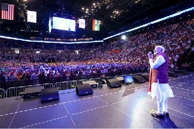 అమెరికాలోని భారతీయుల నైపుణ్యాలు, నిబద్ధత సాటిలేనివని కితాబిచ్చారు. ఇరు దేశాల మధ్య ప్రవాసులు వారధులని అన్నారు. ప్రవాస భారతీయులు ఇరుదేశాలను అనుసంధానించినట్లు ప్రధాని మోడీ పేర్కొన్నారు. అంతేగాక, ఏఐ అంటే కొత్త నిర్వచనం చెప్పారు. ఏఐ అంటే అమెరికాన్ ఇండియన్స్ అని ఆయన వ్యాఖ్యానించారు. ఇప్పుడు భారత్ అవకాశాల గని అని చెప్పారు. అవకాశాల కోసం ఎదురుచూసే కాలం పోయిందన్నారు. కాగా, గతంలో తాను ఎటువంటి పదవుల్లో లేని సమయంలోనే అమెరికాలోని దాదాపు 29 రాష్ట్రాల్లో పర్యటించినట్లు ప్రధాని మోడీ గుర్తుచేసుకున్నారు. ప్రధానిగా అమెరికా పర్యటనల్లో భాగంగా ప్రవాస భారతీయులనుద్దేశించి ప్రసంగించిన కార్యక్రమాలను ప్రస్తావించారు. ఇక్కడి భారతీయులు ప్రతిసారీ పాత రికార్డులను చెరిపేశారన్నారు.
