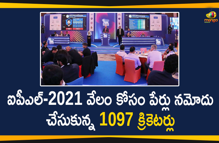 ఇండియన్ ప్రీమియర్ లీగ్ (ఐపీఎల్)-2021 ఆటగాళ్ల వేలం ప్రక్రియను చెన్నై వేదికగా ఫిబ్రవరి 18న నిర్వహించనున్నట్లు ప్రకటించిన సంగతి తెలిసిందే. ఐపీఎల్-2021 కోసం ఆటగాళ్ల పేర్ల నమోదుకు తుది గడువు ఫిబ్రవరి 4 తో ముగిసింది. దీంతో ఈ వేలం కోసం 1097 మంది క్రికెటర్లు పేర్లు నమోదు చేసుకున్నట్టు వెల్లడించారు. పేర్లు నమోదు చేసుకున్న ఆటగాళ్లలో 814 మంది భారతీయ ఆటగాళ్లు కాగా, 283 మంది విదేశీ ఆటగాళ్లు ఉన్నారు.