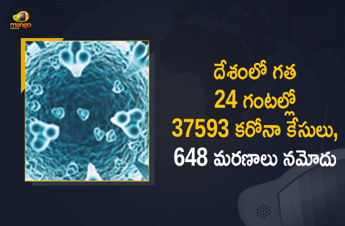 దేశంలో కరోనా మహమ్మారి ప్రభావం కొనసాగుతుంది. గత 24 గంటల్లో 37,593 కేసులు, 648 మరణాలు నమోదవడంతో మొత్తం కరోనా కేసుల సంఖ్య 3,25,12,366 కు చేరుకోగా, మరణాల సంఖ్య 4,35,758 కి పెరిగింది. కొత్తగా నమోదైన కేసుల్లో కేరళ, మహారాష్ట్ర, తమిళనాడు, కర్ణాటక, ఆంధ్రప్రదేశ్, మిజోరాం, ఒడిశా, వెస్ట్ బెంగాల్, అస్సాం, తెలంగాణ వంటి 10 రాష్ట్రాల్లోనే కేసులు అత్యధికంగా నమోదు అయ్యాయి. మరో 34,169 మంది కరోనా నుంచి కోలుకోవడంతో, మొత్తం రికవరీల సంఖ్య 3,17,54,281 కు చేరుకుంది. కరోనా రికవరీ రేటు 97.67 శాతంగా ఉండగా, మరణాల రేటు 1.34 శాతంగా నమోదైంది. దేశంలో ప్రస్తుతం 3,22,327 (0.99) యాక్టీవ్ కేసులు ఉన్నాయి.