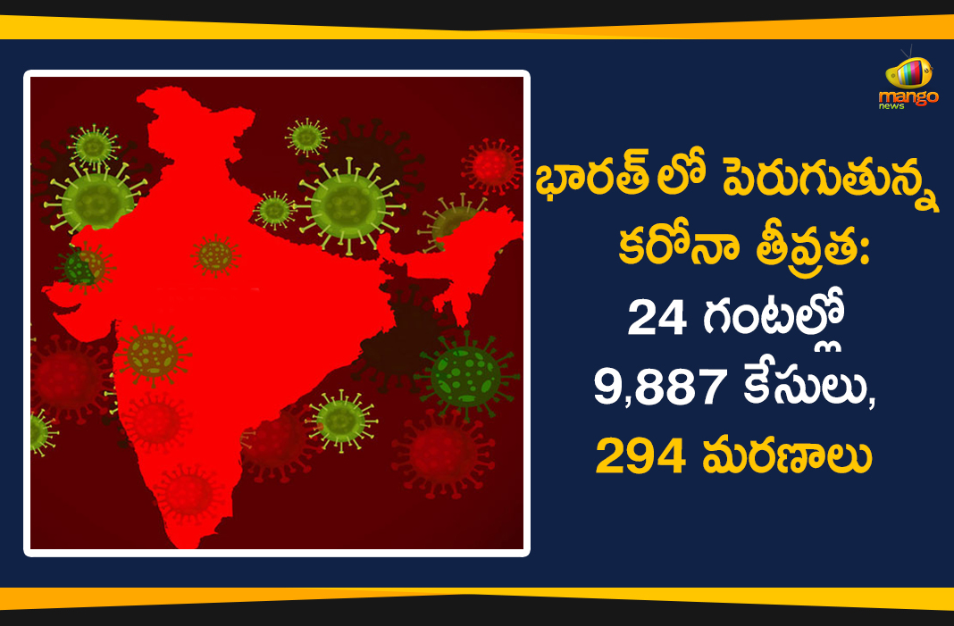 భారత్ లో కోవిడ్-19(కరోనా వైరస్) మహమ్మారి విజృంభణ కొనసాగుతుంది. దీంతో ప్రతిరోజూ పెద్ద సంఖ్యలో పాజిటివ్ కేసులు నమోదవుతున్నాయి. గత 24 గంటల్లోనే దేశవ్యాప్తంగా కొత్తగా 9,887 కరోనా పాజిటివ్ కేసులు, 294 కరోనా మరణాలు నమోదయ్యాయి. దేశంలో కరోనా వ్యాప్తి చెందడం మొదలయ్యాక అత్యధికంగా ఒకేరోజున ఈ స్థాయిలో కేసులు, మరణాలు నమోదవడం ఇదే తొలిసారి. జూన్ 6, శనివారం ఉదయానికి దేశంలో మొత్తం కరోనా బాధితుల సంఖ్య 2,36,657 కు పెరిగిందని కేంద్ర ఆరోగ్య, కుటుంబ సంక్షేమ మంత్రిత్వ శాఖ వెల్లడించింది.