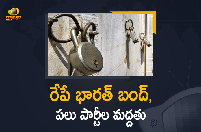 కేంద్రం తెచ్చిన వ్యవసాయ చట్టాలకు వ్యతిరేకంగా అఖిల భారత సంయుక్త కిసాన్ మోర్చా ఆధ్వర్యంలో రైతులు, విశాఖఉక్కు ప్రైవేటీకరణకు వ్యతిరేకంగా విశాఖ ఉక్కు కర్మాగారం కార్మికులు రేపు (మార్చి 26, శుక్రవారం) భారత్ బంద్ నిర్వహించనున్నారు. దేశవ్యాప్తంగా పలు పార్టీలు బంద్ కు మద్ధతు తెలిపాయి. రేపు ఉదయం 6 గంటల నుండి సాయంత్రం 6 గంటల వరకు దేశవ్యాప్తంగా బంద్ నిర్వహించనున్నారు. ఈ భారత్ బంద్ విజయవంతం చేయాలని సంయుక్త కిసాన్ మోర్చా దేశ పౌరులకు పిలుపునిచ్చింది. బంద్ నేపథ్యంలో రైలు ప్రయాణాలు, రోడ్డు రవాణా సేవలు ప్రభావితం కానున్నాయి. అయితే త్వరలో అసెంబ్లీ ఎన్నికలు జరగనున్న నేపథ్యంలో ప్రచార సభలు నడుస్తుండడంతో తమిళనాడు, అస్సాం, పశ్చిమబెంగాల్, కేరళ మరియు పుదుచ్చేరిలలో బంద్ పాటించవద్దని పిలుపునిచ్చినట్టు తెలుస్తుంది.
