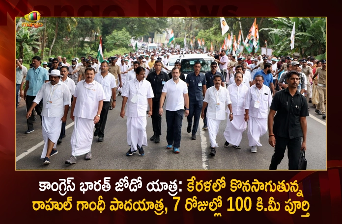 కాంగ్రెస్ చేపట్టిన ‘భారత్ జోడో యాత్ర’ ఏడో రోజుకు చేరుకుంది. రాహుల్ గాంధీ నేతృత్వంలోని పార్టీ నేతలు మంగళవారం కనియాపురం నుంచి పాదయాత్రను ప్రారంభించారు. ఈ క్రమంలో రాహుల్ పాదయాత్ర 100 కి.మీ పూర్తి చేసుకుంది. కేరళలో మొత్తం 17 రోజుల పాటు జరుగనున్న ఈ యాత్ర మంగళవారం మూడో రోజు కొనసాగుతోంది. దీనిపై రాహుల్ గాంధీ ట్విట్టర్లో ఒక సందేశం ఉంచారు. ‘భారతదేశంలోని ప్రజల యొక్క కలలను నెరవేర్చడానికి మేము దేశాన్ని ఏకతాటిపై నిలిపేందుకు అన్ని రాష్ట్రాలనూ కలుపుకుంటూ పయనిస్తున్నాం. ఈ ప్రయత్నంలో భాగంగా తొలి 100 కి.మీ దూరం పూర్తయింది. మరెంతో దూరం ఎదురు చూస్తోంది’ అని రాహుల్ ట్విట్టర్లో పేర్కొన్నారు. కాగా కేరళలో భారీ వర్షంలోనూ ప్రజల నుంచి రాహుల్ యాత్రకు మంచి మద్దతు లభిస్తోంది. ఈ క్రమంలో అన్ని వర్గాల ప్రజలతో ఆయన మమేకమవుతున్నారు. కన్యాకుమారి నుండి కాశ్మీర్ వరకు 3,500 కిలోమీటర్లు, 150 రోజుల పాటు కొనసాగనున్న ఈ పాదయాత్ర మొత్తం 12 రాష్ట్రాలగుండా పయనించనుంది. ఇక ఈ యాత్ర సెప్టెంబర్ 30న కేరళ నుండి కర్నాటకకు చేరుకుంటుంది.