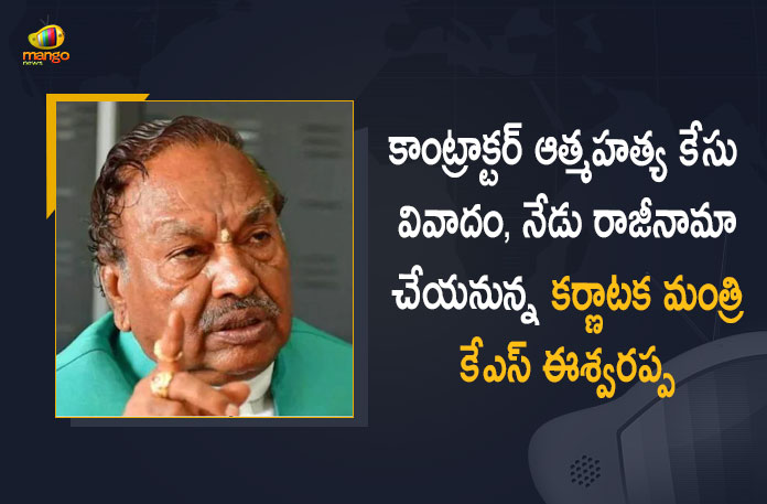 కర్ణాటక రాష్ట్రంలో కాంట్రాక్టర్‌ సంతోష్ పాటిల్ ఆత్మహత్యలో పాత్ర ఉందన్న ఆరోపణలతో కర్ణాటక గ్రామీణాభివృద్ధి, పంచాయత్ రాజ్ శాఖ మంత్రి కేఎస్ ఈశ్వరప్ప వివాదంలో చిక్కుకున్న విషయం తెలిసిందే. ఈ నేపథ్యంలో కేఎస్ ఈశ్వరప్ప కీలక నిర్ణయం తీసుకున్నారు. శుక్రవారం సాయంత్రం తన మంత్రి పదవికి రాజీనామా చేస్తున్నానని, ముఖ్యమంత్రి బసవరాజ్ బొమ్మైకి తన రాజీనామా లేఖను అందజేస్తానని మంత్రి కేఎస్ ఈశ్వరప్ప పేర్కొన్నారు. ముఖ్యమంత్రి బసవరాజ్ బొమ్మై, పార్టీ జాతీయ నాయకులు, పార్టీలోని సీనియర్లు సహా తనను ఈ స్థాయికి ఎదిగేలా సహకరించిన వారిని ఇబ్బందికర పరిస్థితిల్లో ఉంచకూడదనే రాజీనామా చేయాలని నిర్ణయించుకున్నానని ఆయన పేర్కొన్నారు.