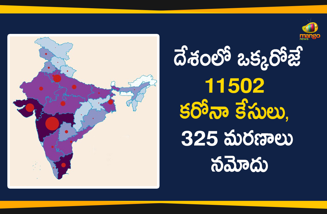 భారత్ లో కోవిడ్-19(కరోనా వైరస్) మహమ్మారి మరింతగా విజృంభిస్తుంది. దీంతో దేశంలో ప్రతి రోజు పెద్ద సంఖ్యలో పాజిటివ్ కేసులు నమోదు అవుతున్నాయి. గత 24 గంటల్లోనే దేశవ్యాప్తంగా కొత్తగా 11,502 కరోనా పాజిటివ్ కేసులు, 325 కరోనా మరణాలు నమోదయ్యాయి. జూన్ 15, సోమవారం ఉదయానికి దేశంలో మొత్తం కరోనా బాధితుల సంఖ్య 3,32,424 కు పెరిగిందని కేంద్ర ఆరోగ్య, కుటుంబ సంక్షేమ మంత్రిత్వ శాఖ వెల్లడించింది. మరోవైపు ప్రపంచవ్యాప్తంగా అత్యధిక కరోనా కేసులు నమోదైన దేశాల్లో అమెరికా, బ్రెజిల్, రష్యా తర్వాత భారత్ 4వ స్థానంలో నిలిచింది.