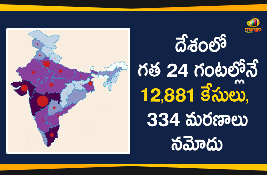 భారత్ లో కోవిడ్-19(కరోనా వైరస్) మహమ్మారి విజృంభణ కొనసాగుతుంది. దీంతో దేశంలో పెద్ద సంఖ్యలో పాజిటివ్ కేసులు నమోదవుతున్నాయి. గత 24 గంటల్లోనే దేశవ్యాప్తంగా కొత్తగా 12,881 కరోనా పాజిటివ్ కేసులు, 334 కరోనా మరణాలు నమోదయ్యాయి. దేశంలో కరోనా వ్యాప్తి చెందడం మొదలయ్యాక అత్యధికంగా ఒకేరోజున ఈ స్థాయిలో కేసులు నమోదవడం ఇదే తొలిసారి. జూన్ 18, గురువారం ఉదయానికి దేశంలో మొత్తం కరోనా బాధితుల సంఖ్య 3,66,946 కు పెరిగిందని కేంద్ర ఆరోగ్య, కుటుంబ సంక్షేమ మంత్రిత్వ శాఖ వెల్లడించింది. మరోవైపు ప్రపంచవ్యాప్తంగా అత్యధిక కరోనా కేసులు నమోదైన దేశాల్లో భారత్ 4వ స్థానంలో నిలిచింది.