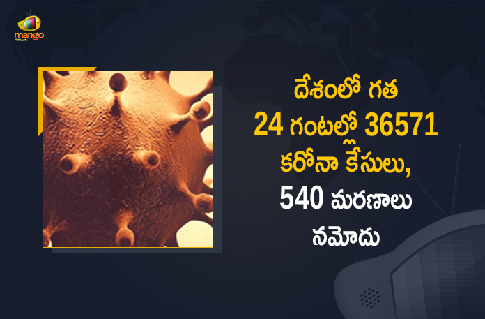దేశంలో కరోనా మహమ్మారి వ్యాప్తి తగ్గుముఖం పట్టింది. గత 24 గంటల్లో 36,571 కేసులు, 540 మరణాలు నమోదవడంతో మొత్తం కరోనా కేసుల సంఖ్య 3,23,58,829 కు చేరుకోగా, మరణాల సంఖ్య 4,33,589 కి పెరిగింది. కొత్తగా నమోదైన కేసుల్లో కేరళ, మహారాష్ట్ర, తమిళనాడు, ఆంధ్రప్రదేశ్, కర్ణాటక, ఒడిశా, వెస్ట్ బెంగాల్, అస్సాం, మణిపూర్, మిజోరాం వంటి 10 రాష్ట్రాల్లోనే కేసులు అత్యధికంగా నమోదు అయ్యాయి. మరో 36,555 మంది కరోనా నుంచి కోలుకోవడంతో, మొత్తం రికవరీల సంఖ్య 3,15,61,635 కు చేరుకుంది. కరోనా రికవరీ రేటు 97.54 శాతంగా ఉండగా, మరణాల రేటు 1.34 శాతంగా నమోదైంది.