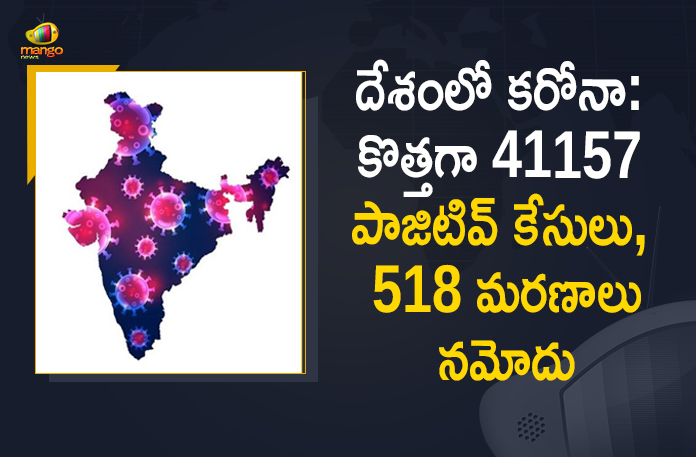 దేశంలో కరోనా మహమ్మారి ప్రభావం కొనసాగుతుంది. గత 24 గంటల్లో దేశవ్యాప్తంగా కొత్తగా 41,157 కరోనా కేసులు నమోదవడంతో మొత్తం కేసుల సంఖ్య 3,11,06,065 కు చేరుకుంది. కరోనాకు చికిత్స పొందుతూ మరో 518 మంది మరణించడంతో మరణాల సంఖ్య 4,13,609 కి పెరిగింది. ప్రస్తుతం 4,22,660 (1.36%) మంది కరోనా బాధితులు హోం ఐసోలేషన్ లలో, ఆసుపత్రుల్లో చికిత్స పొందుతున్నారు.