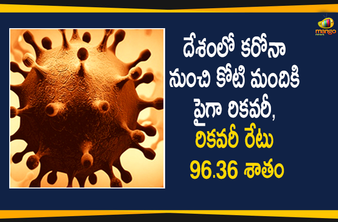 దేశంలో కరోనా నుంచి కోలుకున్న వారి సంఖ్య ఒక కోటి దాటింది. గత 24 గంటల్లో 19,587 మంది బాధితులు కరోనా నుంచి కోలుకోవడంతో రికవరీ అయిన వారి మొత్తం సంఖ్య 1,00,16,859 కు చేరుకుంది. దీంతో దేశంలో కరోనా రికవరీ రేటు 96.36 శాతంగా నమోదైంది. మరోవైపు కొత్తగా 20,346 పాజిటివ్ కేసులు నమోదు కావడంతో గురువారం ఉదయానికి మొత్తం కేసుల సంఖ్య 1,03,95,278 కు చేరుకుంది. ఇక కరోనాతో మరో 222 మంది మరణించడంతో మరణాల సంఖ్య 1,50,336 కి పెరిగింది. దేశంలో మరణాల రేటు 1.45 శాతంగా ఉంది.