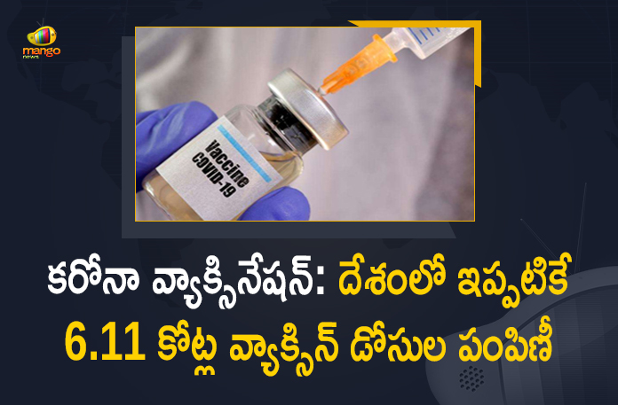 కరోనా వ్యాక్సినేషన్: దేశంలో ఇప్పటికే 6.11 కోట్ల వ్యాక్సిన్ డోసుల పంపిణీ