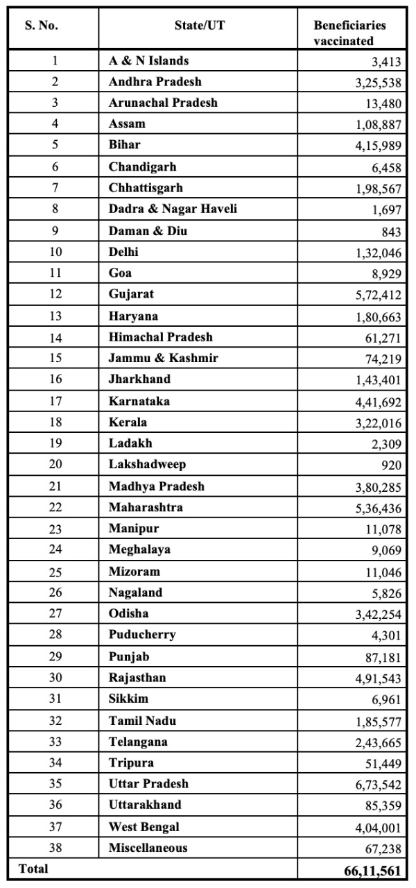 రాష్ట్రాల వారీగా కరోనా వ్యాక్సినేషన్ వివరాలు:
