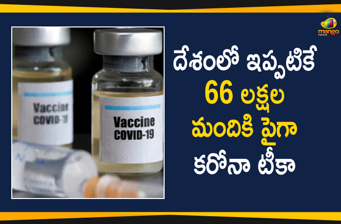 దేశవ్యాప్తంగా కరోనా వ్యాక్సిన్ పంపిణీ కార్యక్రమం కొనసాగుతోంది. వ్యాక్సిన్ పంపిణి ప్రారంభించిన 25 వ రోజైన ఫిబ్రవరి 9, మంగళవారం నాడు మొత్తం 7,990 సెషన్స్ లో 3,52,553 మందికి కరోనా వ్యాక్సిన్ వేసినట్టు కేంద్ర ఆరోగ్య, కుటుంబ సంక్షేమ శాఖ వెల్లడించింది. ఇక ఫిబ్రవరి 10, బుధవారం ఉదయం 8 గంటల వరకు దేశంలో 66 లక్షలకు పైగా (66,11,561) మంది లబ్ధిదారులకు కరోనా వ్యాక్సిన్ ఇచ్చినట్టు పేర్కొన్నారు. వీరిలో 56,10,134 హెల్త్ కేర్ వర్కర్స్, 10,01,427 మంది ఫ్రంట్లైన్ వర్కర్స్ ఉన్నట్టు తెలిపారు. ఆంధ్రప్రదేశ్ లో ఇప్పటికి 3,25,538 మంది, తెలంగాణలో 2,43,665 మంది లబ్ధిదారులకు కరోనా వ్యాక్సిన్ వేశారు.