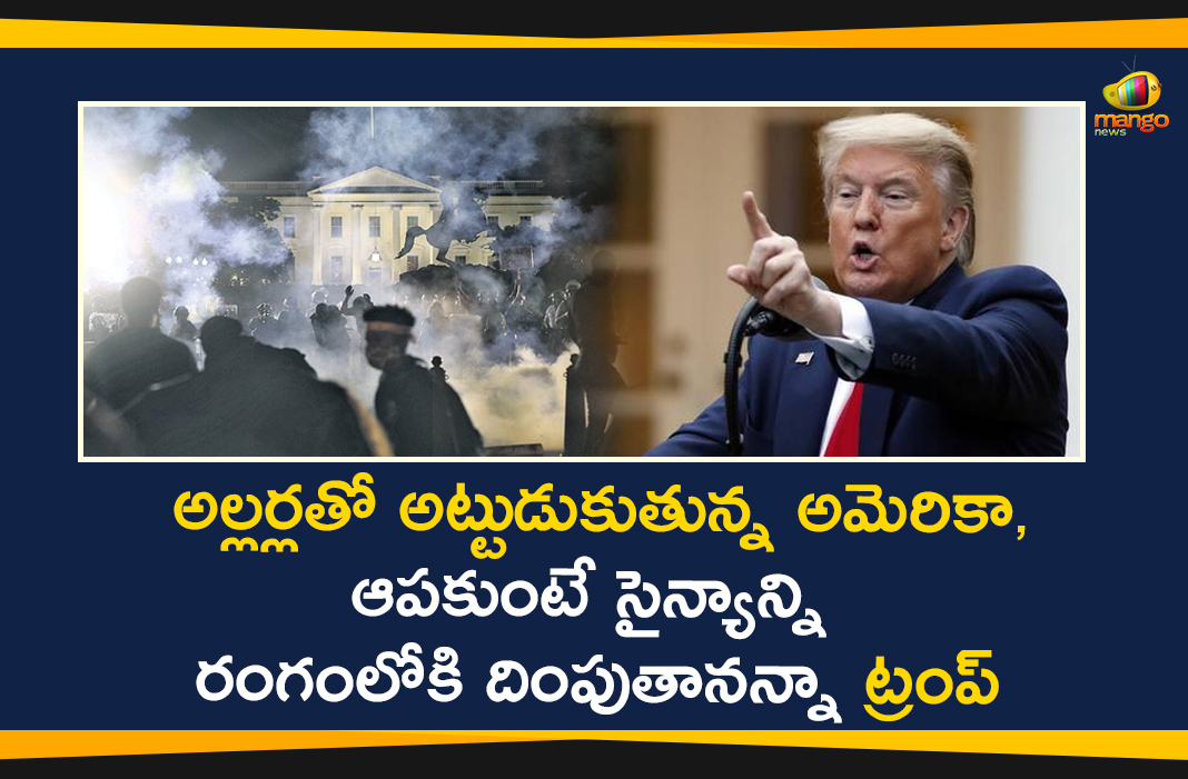 అగ్రరాజ్యంలో అల్లర్లపై వైట్ హౌస్ లోని రోజ్గార్డెన్ నుంచి అధ్యక్షుడు డోనాల్డ్ ట్రంప్ ప్రసంగించారు. పలు నగరాల్లో జరుగుతున్న అల్లర్లను అదుపు చేయడంలో గవర్నర్లు ఉదాసీనంగా వ్యవహరిస్తున్నారని ఆయన ఆరోపించారు. అల్లర్లు జరుగుతున్న రాష్ట్రాల్లోకి నేషనల్ గార్డ్స్ను అనుమతించపోతే సైన్యాన్ని రంగంలోకి దింపాల్సి వస్తుందని ట్రంప్ హెచ్చరించారు. దేశంలో శాంతి, భద్రతలను కాపాడడం తన కర్తవ్యం అని, పరిస్థితులు చేయిదాటితే అందుకు తగిన చర్యలు తీసుకుంటానని పేర్కొన్నారు. ఎక్కడా శాంతియుత నిరసనలు జరగడం లేదని, అవాంఛిత ఘటనలు చోటు చేసుకున్నాయని మండిపడ్డారు. ఈ అల్లర్లను దేశీయ ఉగ్రవాద చర్యలుగా ట్రంప్ పేర్కొన్నారు. పలు నగరాల్లో జరుగుతున్న అల్లర్లు, దోపిడీలు, దాడులను ఆపడానికి నేషనల్ గార్డ్స్ ను పంపిస్తున్నానని ప్రకటించారు. గవర్నర్లు వీలైనంత త్వరగా నేషనల్ గార్డ్స్ని రంగంలోకి దింపాలని ట్రంప్ ఆదేశించారు.