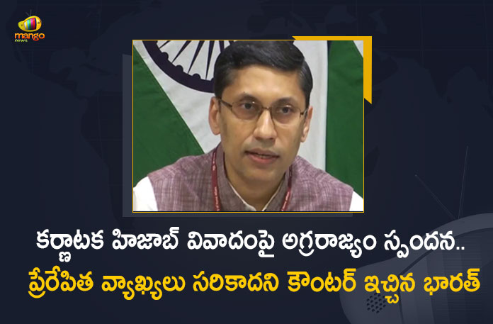 భారతదేశ అంతర్గత సమస్యలపై ఇతర దేశాలు చేసే ప్రేరేపిత వ్యాఖ్యలు స్వాగతించబడవు అని విదేశీ వ్యవహారాల మంత్రిత్వ శాఖ అధికారిక ప్రతినిధి అరిందమ్ బాగ్చీ ప్రకటించారు. కాగా, కర్ణాటకలోని ఒక కళాశాలలోకొన్నిరోజులక్రితం హిజాబ్ ధారణపై మొదలైన వివాదం రోజుకో మలుపు తిరుగుతోంది. ఇది ఇప్పుడు అంతర్జాతీయ స్థాయికి చేరింది. అగ్రరాజ్యం అమెరికా దీనిలో తలదూర్చింది. అమెరికా రాయబారి, ప్రభుత్వ సీనియర్ అధికారి రషద్ హుస్సేన్ అంతర్జాతీయంగా మత స్వేచ్ఛ కోసం అంటూ కర్ణాటక హిజాబ్ వివాదంపై తన అభిప్రాయాన్ని వ్యక్తం చేసారు. అయితే, దీనిపై భారత్ తీవ్రంగా స్పందించింది.