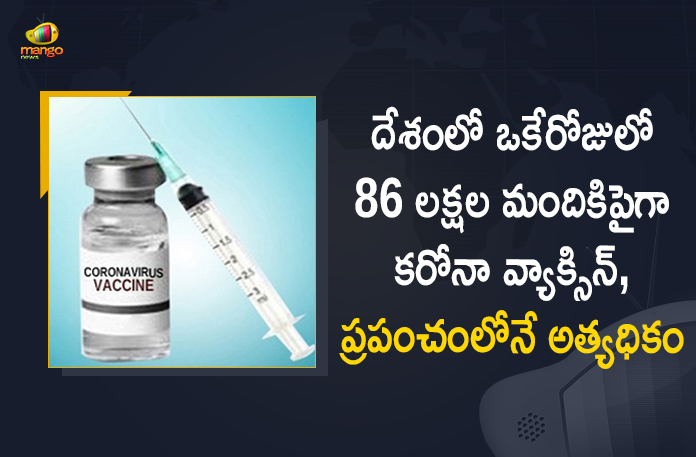 దేశంలో కరోనా వ్యాక్సినేషన్ కార్యక్రమం విజయవంతంగా కొనసాగుతుంది. ఈ నేపథ్యంలో వ్యాక్సినేషన్ కార్యక్రమంలో భారత్ సరికొత్త రికార్డ్ నెలకొల్పింది. దేశంలో జూన్ 21, సోమవారం నాడు ఒక్కరోజే 88.09 లక్షల మందికి కరోనా వ్యాక్సిన్ పంపిణీ చేశారు. ఇప్పటివరకు ప్రపంచంలో ఒకరోజు వ్యవధిలో పంపిణీ చేసిన కరోనా వ్యాక్సిన్ డోసులలో ఇదే అత్యధికం. దీంతో జూన్ 22, మంగళవారం ఉదయం 8 గంటల వరకు లబ్ధిదారులకు అందించిన కరోనా వ్యాక్సిన్ డోసుల సంఖ్య 28.87 కోట్లు (28,87,66,201) దాటినట్టు కేంద్ర ఆరోగ్య, కుటుంబ సంక్షేమ శాఖ వెల్లడించింది.