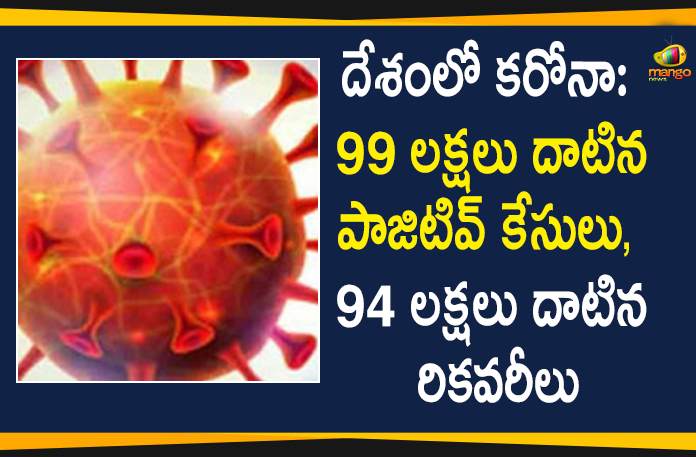 భారత్ లో గత కొన్ని రోజులుగా కరోనా పాజిటివ్ కేసుల నమోదు తగ్గుముఖం పట్టింది. మంగళవారం ఉదయానికి దేశంలో పాజిటివ్ కేసులు 99 లక్షలు దాటగా, రికవరీ అయినా వారి సంఖ్య 94 లక్షలు దాటింది. గత 24 గంటల్లో కొత్తగా 22065 పాజిటివ్ కేసులు, 354 మరణాలు నమోదవడంతో దేశంలో కేసుల సంఖ్య 99,06,165 కు చేరుకోగా, మరణాల సంఖ్య 1,43,709 కి పెరిగింది. ప్రస్తుతం హోమ్ ఐసొలేషన్స్ లో, ఆసుపత్రుల్లో 3,39,820 మంది చికిత్స పొందుతున్నారు. మరోవైపు కొత్తగా 34,477 మంది కోలుకోవడంతో, మొత్తం రికవరీల సంఖ్య 94,22,636 చేరుకుంది. కరోనా రికవరీ రేటు 95.12 శాతంగా ఉండగా, మరణాల రేటు 1.45 శాతంగా నమోదైంది.
