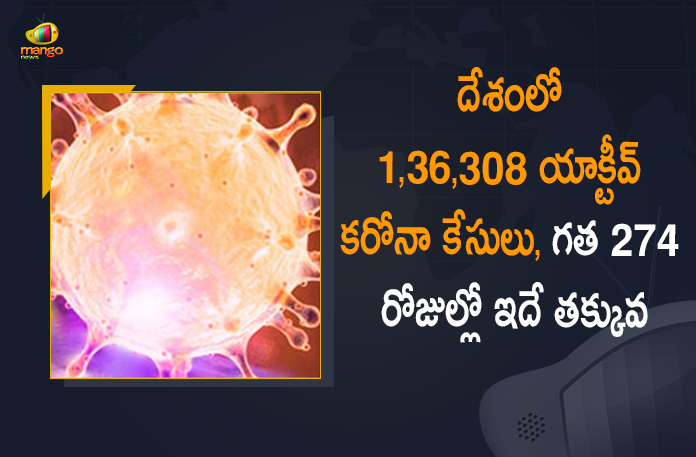 దేశంలో 1,36,308 యాక్టీవ్ కరోనా కేసులు, గత 274 రోజుల్లో ఇదే తక్కువ: