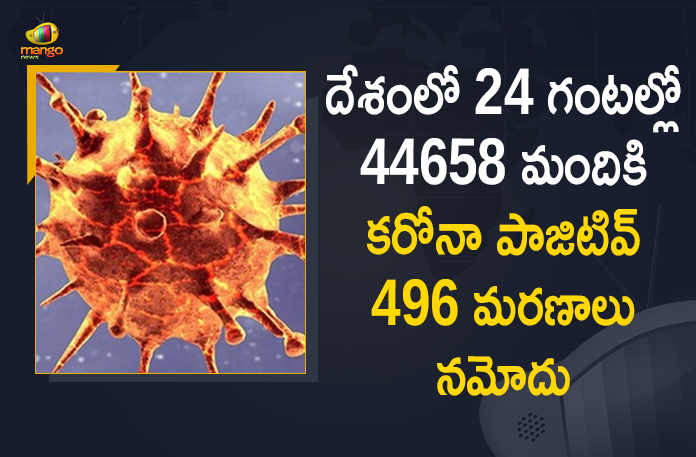 దేశంలో కరోనా మహమ్మారి ప్రభావం కొనసాగుతుంది. అయితే గత 61 రోజులుగా 50 వేలలోపే కేసులు నమోదవుతున్నాయి. కొత్తగా 44,658 కరోనా పాజిటివ్ కేసులు నమోదవడంతో, దేశంలో మొత్తం పాజిటివ్ కేసుల సంఖ్య 3,26,03,188 కు చేరుకుంది. అలాగే కరోనాకు చికిత్స పొందుతూ మరో 496 మంది మరణించడంతో మరణాల సంఖ్య 4,36,861 కి పెరిగింది. ప్రస్తుతం 3,44,899 (1.06%) మంది కరోనా బాధితులు హోం ఐసోలేషన్ లలో, ఆసుపత్రుల్లో చికిత్స పొందుతున్నారు.