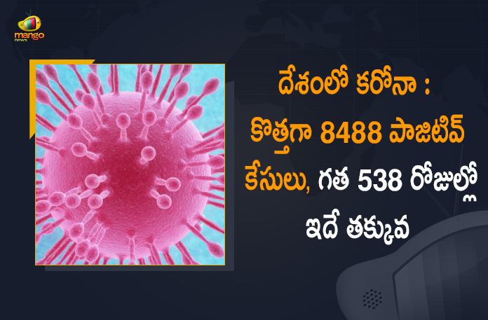 దేశంలో కరోనా వ్యాప్తి ప్రభావం తగ్గుముఖం పట్టింది. గత 538 రోజుల్లోనే కరోనా కేసులు (8,488) తక్కువుగా నమోదయ్యాయి. గత 24 గంటల్లో కొత్తగా 8,488 కరోనా పాజిటివ్ కేసులు నమోదుకాగా, మొత్తం కేసుల సంఖ్య 3,45,18,901 కు చేరుకుంది. అలాగే కరోనాతో 249 మంది మరణించడంతో మొత్తం మరణాల సంఖ్య 4,65,911 కు పెరిగింది. దేశంలో ముఖ్యంగా కేరళ, మహారాష్ట్ర, తమిళనాడు, వెస్ట్ బెంగాల్, ఏపీ, మిజోరాం, కర్ణాటక వంటి రాష్ట్రాల్లోనే కొత్త కేసులు ఎక్కువుగా నమోదు అవుతున్నాయి. ఇక ప్రస్తుతం 1,18,443 (0.34%) మంది కరోనాకు చికిత్స పొందుతున్నారు. కొత్తగా మరో 12,510 మంది బాధితులు కరోనా నుంచి కోలుకోవడంతో, మొత్తం రికవరీల సంఖ్య 3,39,34,547 కు చేరుకుంది. కరోనా రికవరీ రేటు 98.31 శాతంగా ఉండగా, మరణాల రేటు 1.35 శాతంగా నమోదైంది.