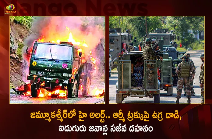 జమ్మూకశ్మీర్లో దారుణం చోటుచేసుకుంది. పూంచ్ జిల్లాలో రాష్ట్రీయ రైఫిల్స్ యూనిట్(ఆర్ఆర్యూ) జవాన్లు ప్రయాణిస్తున్న ట్రక్కుపై ఉగ్రవాదులు మెరుపుదాడి చేశారు. ఈ దాడిలో ఐదుగురు జవాన్లు సజీవ దహనమవగా.. మరో జవానుకు తీవ్ర గాయాలయ్యాయి. భారత సైన్యం, పోలీసుల కథనం ప్రకారం.. రాజౌరీ సెక్టార్లోని అడవుల్లో ఉగ్రవాదులు నక్కి ఉన్నారని ఇటీవల ఇంటెలిజెన్స్ బ్యూరో హెచ్చరికలు జారీ చేసింది. జీ-20 సమావేశాన్ని వ్యతిరేకిస్తున్న జైషే మహమ్మద్, దాని అనుబంధ సంస్థలు గ్రనేడ్ దాడులకు పాల్పడే ప్రమాదముందని తెలిపింది. దీంతో శ్రీనగర్, దక్షిణ కశ్మీర్, రాజౌరీ, పూంచ్ సెక్టార్లలో అప్రమత్తంగాఉండాలని, భద్రతను కట్టుదిట్టం చేయాలని కేంద్ర హోంశాఖ హెచ్చరికలు జారీ చేసింది. ఇక ఈ ఘటన నేపథ్యంలో.. ఉగ్రదాడి తర్వాత భింబర్ గలి, భాటా ధురియన్ మధ్య జాతీయ రహదారిపై అన్ని రకాల వాహనాల రాకపోకలు నిలిపివేశారు. అలాగే జమ్మూలోనిఅంతర్జాతీయ సరిహద్దులతో పాటు, దక్షిణ కశ్మీర్లోని షోపియాన్, ఉత్తర కాశ్మీర్లోని కుప్వారా, ఉరి సెక్టార్ తదితర ప్రాంతాలలో హై అలర్ట్ ప్రకటించారు.