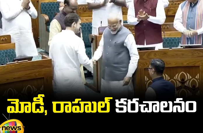 పార్లమెంట్లో అరుదైన సంఘటన చోటుచేసుకుంది. ఎప్పుడూ ఒకరిపై ఒకరు విమర్శలు చేసుకుంటూ.. నిప్పులు చెరుగుకునే ఆ ఇద్దరు నేతలు ఆప్యాయంగా కరచాలనం చేసుకున్నారు. బుధవారం లోక్ సభ స్పీకర్గా వరుసగా రెండోసారి ఓం బిర్లా ఎన్నికయ్యారు. ఈక్రమంలో ప్రధాని నరేంద్ర మోడీ, ప్రతిపక్ష నేత రాహుల్ గాంధీలు ఓం బిర్లాకు అభినందనలు తెలియజేశారు. ఆ తర్వాత ఆయన్ను పోడియం వద్దకు తీసుకెళ్లి స్పీకర్ కుర్చీలో కూర్చోబెట్టారు. అయితే స్పీకర్ ఓం బిర్లాను అభినందించే సమయంలో రాహుల్ గాంధీ, ప్రధాని మోడీలు ఆప్యాయంగా కరచలనం చేసుకున్నారు. అయితే రాహుల్ గాంధీ, మోడీ కరచాలనం చేసుకోవడం చూసి సభ్యులంతా ఒక్కసారిగా కంగుతిన్నారు. ఎప్పుడూ ఒకరిపై ఒకరు విమర్శలు చేసుకునే వీరు.. కరచాలనం చేసుకోవడం ఏంటని షాక్ అయ్యారు.