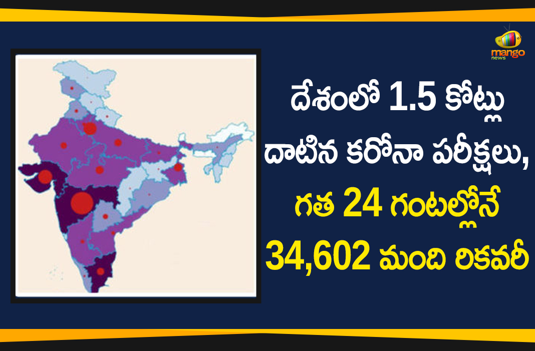 భారత్ లో ఇప్పటి వరకు పరీక్షించిన కరోనా శాంపిల్స్ సంఖ్య 1.5 కోట్లు (1,54,28,170) దాటింది. గత 24 గంటల్లోనే 3,52,801 శాంపిల్స్ ను పరీక్షించినట్టు కేంద్ర ఆరోగ్య, కుటుంబ సంక్షేమ మంత్రిత్వ శాఖ వెల్లడించింది. దీని ప్రకారం దేశంలో ప్రతి మిలియన్ జనాభాకు 11,179.3 మందికి కరోనా పరీక్షలు జరుగుతున్నాయి. టెస్టింగ్-ట్రాకింగ్-ట్రీట్మెంట్ వ్యూహాన్ని అమలు చేయడం వల్ల పరీక్షల సంఖ్య క్రమంగా పెరుగుతుందని చెప్పారు. అలాగే కరోనా పరీక్షల ల్యాబ్ ల సంఖ్య 1290 కి పెరిగింది.