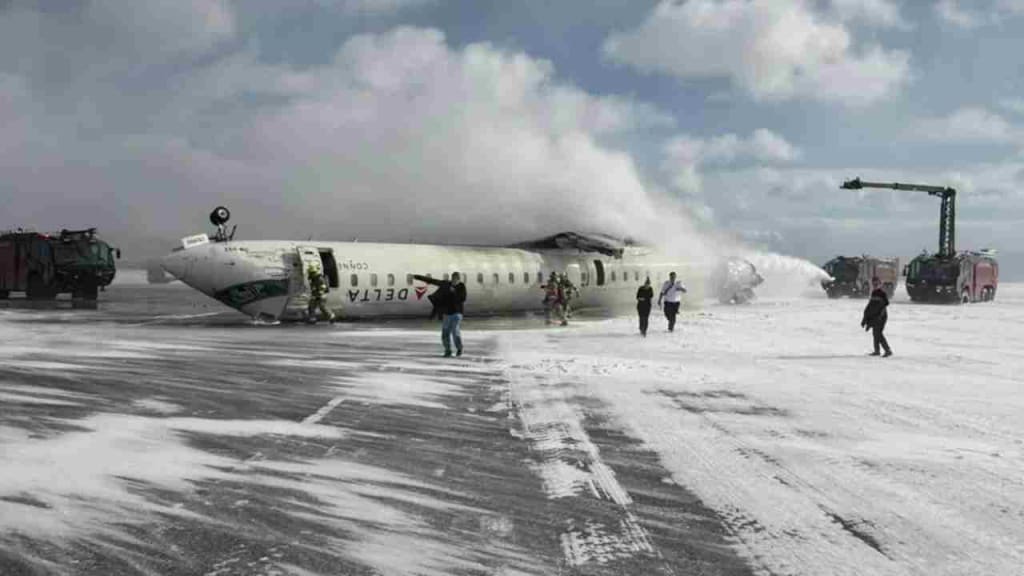 కారణం తెలియని పరిస్థితిలో, విమానం ల్యాండ్ అయిన వెంటనే పైలట్ అదుపు కోల్పోవడంతో రన్వేపై బోల్తా పడింది. ఈ ప్రమాదంలో 18 మంది గాయపడగా, ముగ్గురి పరిస్థితి విషమంగా ఉంది. ఈ ఘటన కెనడాలోని టొరంటో పియర్సన్ అంతర్జాతీయ విమానాశ్రయంలో చోటుచేసుకుంది. అమెరికాలోని మిన్నెపొలిస్ నుంచి వచ్చిన డెల్టా ఎయిర్లైన్స్ విమానం ఈ ప్రమాదానికి గురైంది.