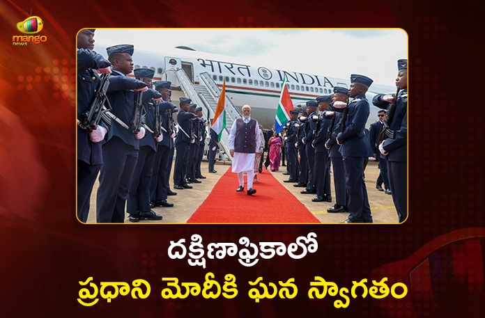 ఘన స్వాగతం: ప్రధాని మోదీకి వాటర్క్లూఫ్ ఎయిర్ ఫోర్స్ బేస్ వద్ద సాంప్రదాయ స్వాగతం లభించింది. సౌత్ ఆఫ్రికా ప్రెసిడెన్సీ మంత్రి ఖుంబుద్జో ఎన్టిషావెని ఆయనకు స్వాగతం పలికారు.
