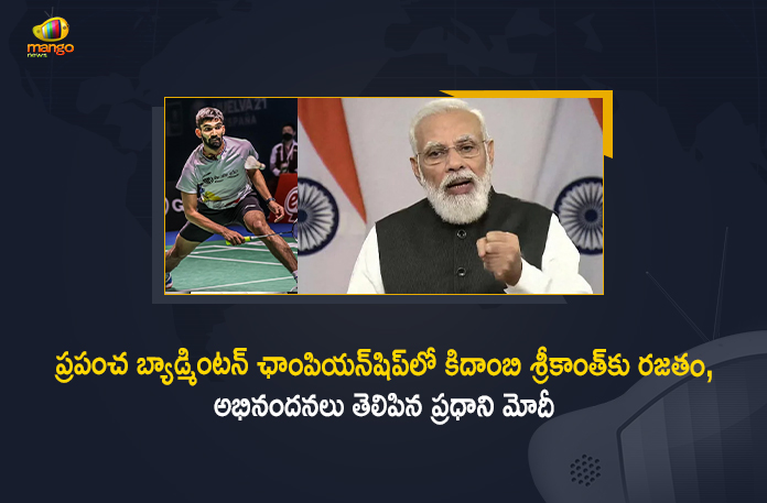 BWF Championship 2021, BWF World Championship, BWF World Championship 2021, BWF World Championships, BWF World Championships Final, Kidambi Srikanth, Kidambi Srikanth clinches historic silver at BWF, Kidambi Srikanth secures historic silver at BWF World Championship, Mango News, MangoNews, PM Modi Congratulates Kidambi Srikanth, PM Modi Congratulates Kidambi Srikanth for Winning Silver Medal at World Badminton Championship, Shuttler Kidambi Srikanth, Srikanth BWF World Championships, Srikanth Kidambi For Silver Medal In BWF C’Ship, Srikanth’s BWF World Championships silver