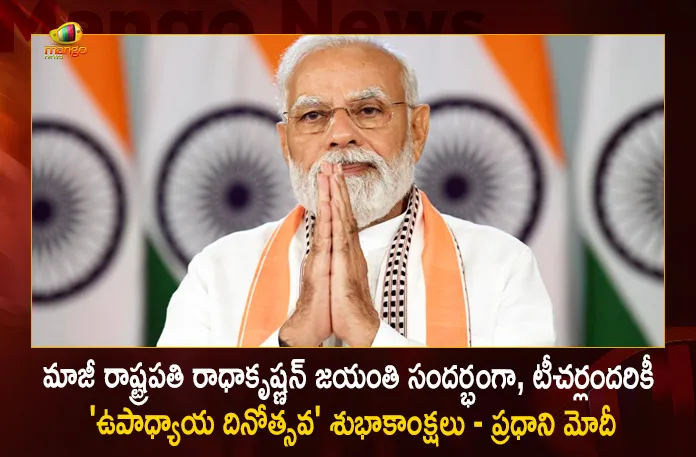 మాజీ రాష్ట్రపతి సర్వేపల్లి రాధాకృష్ణన్ జయంతి సందర్భంగా ఆయనకు నివాళులర్పించిన ప్రధానమంత్రి నరేంద్ర మోదీ, టీచర్లందరికీ ‘ఉపాధ్యాయ దినోత్సవ’ శుభాకాంక్షలు తెలిపారు. యువకులను తీర్చిదిద్దడంలో ఉపాధ్యాయుల పాత్ర అనితరసాధ్యమని ఆయన కొనియాడారు. ఈ మేరకు ప్రధాని మోదీ ట్విట్టర్లో ఉపాధ్యాయులను ఉద్దేశించి ఒక సందేశాన్ని ఇచ్చారు. అందులో ఆయన.. ‘ఉపాధ్యాయ దినోత్సవ శుభాకాంక్షలు, ముఖ్యంగా యువ మనస్సులలో విద్య యొక్క ఆనందాన్ని పంచే కష్టపడి పనిచేసే ఉపాధ్యాయులందరికీ శుభాకాంక్షలు. మన మాజీ రాష్ట్రపతి డాక్టర్ రాధాకృష్ణన్ జయంతి సందర్భంగా నేను ఆయనకు నివాళులర్పిస్తున్నాను’ అని పేర్కొన్నారు.