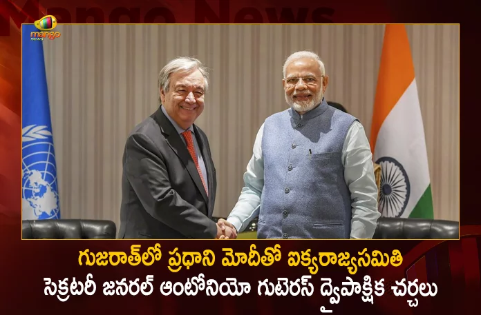 ఐక్యరాజ్యసమితి సెక్రటరీ జనరల్ ఆంటోనియో గుటెరస్తో ప్రధాని నరేంద్ర మోదీ గురువారం గుజరాత్లోని కెవాడియాలో ద్వైపాక్షిక సమావేశం నిర్వహించారు. బుధవారం నుంచి మూడు రోజుల భారత్ పర్యటనలో ఉన్న గుటెర్రెస్తో మోదీ సుదీర్ఘంగా సంభాషించారు. ఈ సందర్భంగా వీరిరువురూ కలిసి ‘మిషన్ లైఫ్’ (పర్యావరణానికి జీవనశైలి)ని ప్రారంభించారు. ప్రపంచవ్యాప్తంగా వాతావరణ మార్పుల సమస్య ప్రతిచోటా ఎదురవుతోందని, అందుకే ఈ మిషన్ లైఫ్ ద్వారా స్థిరత్వం వైపు ప్రజల సామూహిక విధానాన్ని మార్చడానికి త్రిముఖ వ్యూహాన్ని లక్ష్యంగా పెట్టుకుందని గుటెరస్ తెలిపారు. ధృవాలవద్ద ఉండే హిమానీనదాలు కూడా క్రమక్రమంగా కరిగిపోతున్నాయని, అదేసమయంలో మరోవైపు నదులు ఎండిపోతున్నాయని ప్రధాని మోదీ పేర్కొన్నారు.