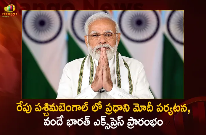 ప్రధానమంత్రి నరేంద్ర మోదీ రేపు (డిసెంబర్ 30, శుక్రవారం) పశ్చిమబెంగాల్ లో పర్యటించనున్నారు. ఈ పర్యటనలో భాగంగా పశ్చిమ బెంగాల్లో రూ.7800 కోట్ల కంటే ఎక్కువ విలువైన ప్రాజెక్టులకు ప్రధాని మోదీ శంకుస్థాపనలు, ప్రారంభోత్సవాలు చేయనున్నారు. ముందుగా గురువారం ఉదయం ప్రధాని మోదీ హౌరా రైల్వే స్టేషన్కి చేరుకుని, హౌరా నుండి న్యూ జల్పాయిగురిని వరకు నడిచే వందే భారత్ ఎక్స్ప్రెస్ని జెండా ఊపి ప్రారంభించనున్నారు. కోల్కతా మెట్రో యొక్క పర్పుల్ లైన్ జోకా-తరటాలా స్ట్రెచ్ను కూడా ప్రధాని ప్రారంభిస్తారు మరియు వివిధ రైల్వే ప్రాజెక్టులకు ప్రధాని శంకుస్థాపనలు, ప్రారంభోత్సవాలు చేయనున్నారు. ఈ మేరకు ప్రధానమంత్రి కార్యాలయం ఒక ప్రకటన విడుదల చేసింది.
