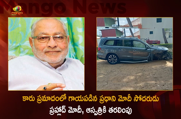 ప్రధానమంత్రి నరేంద్ర మోదీ సోదరుడు ప్రహ్లాద్ మోదీ ప్రయాణిస్తున్న కారు ప్రమాదానికి గురయ్యారు. కర్ణాటకలోని మైసూరు నుంచి బండిపురా వెళ్తుండగా కడకోల సమీపంలో ప్రమాదానికి గురయ్యారు. మంగళవారం ప్రహ్లాద్ మోదీ తన భార్య, కుమారుడు, కోడలు, మనవడితో కలిసి మెర్సిడెస్ బెంజ్ కారులో బండిపురాకు వెళ్తుండగా మధ్యాహ్నం 2 గంటల ప్రాంతంలో వారి వాహనం అదుపుతప్పి డివైడర్ను బలంగా ఢీకొట్టింది. దీంతో కారులోని వారు గాయపడ్డారు. కాగా ప్రమాదం జరిగినప్పుడు ప్రహ్లాద్ వెంట ఆయన కాన్వాయ్ కూడా ప్రయాణిస్తోంది. ఇక ఈ ప్రమాదంలో ప్రహ్లాద్ మోదీ మనవడికి కాలు ఫ్రాక్చర్ కాగా, మిగతా వారికి స్వల్ప గాయాలయ్యాయి. ప్రస్తుతం వీరు మైసూరులోని జేఎస్ ఆస్పత్రిలో చికిత్స పొందుతున్నారు. మైసూరు పోలీసు సూపరింటెండెంట్ సీమా లత్కర్ తెలిపిన వివరాల ప్రకారం.. ఈ ప్రమాదంలో కారు ముందు భాగం తీవ్రంగా దెబ్బతిందని, ప్రహ్లాద్ మోదీతో పాటు ఆయన కుటుంబ సభ్యులకు గాయాలయ్యాయని చెప్పారు. సమాచారం అందుకున్న వెంటనే ఘటనా స్థలానికి చేరుకున్నామని, చికిత్స నిమిత్తం జేఎస్ఎస్ ఆస్పత్రికి తరలించామని చెప్పారు. కాగా ప్రమాదంపై ప్రధాని మోదీ ఆరా తీశారు.