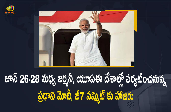 ప్రధాని నరేంద్ర మోదీ జూన్ 26-28 మధ్య జర్మనీ మరియు యునైటెడ్ అరబ్ ఎమిరేట్స్ (యూఏఈ) దేశాల్లో పర్యటించనున్నారు. ఈ పర్యటనలో భాగంగా ముందుగా జర్మనీ ఛాన్సలర్ ఓలాఫ్ స్కోల్జ్ ఆహ్వానం మేరకు జూన్ 26-27 తేదీల్లో జర్మన్ ప్రెసిడెన్సీ ఆధ్వర్యంలో జరిగే జీ7 సమ్మిట్ కోసం ష్లోస్ ఎల్మావును ప్రధాని సందర్శించనున్నారు. అనంతరం జూన్ 28న ప్రధాని మోదీ యూఏఈకి వెళ్లనున్నారు. ఈ మేరకు ప్రధానమంత్రి కార్యాలయం బుధవారం ఒక ప్రకటన విడుదల చేసింది. జర్మనీలో జరిగే జీ7 సమ్మిట్ సందర్భంగా పర్యావరణం, ఇంధనం, వాతావరణం, ఆహార భద్రత, ఆరోగ్యం, జెండర్ ఈక్వాలిటీ మరియు ప్రజాస్వామ్యం వంటి అంశాలపై రెండు సెషన్లలో ప్రధాని ప్రసంగించే అవకాశముంది.