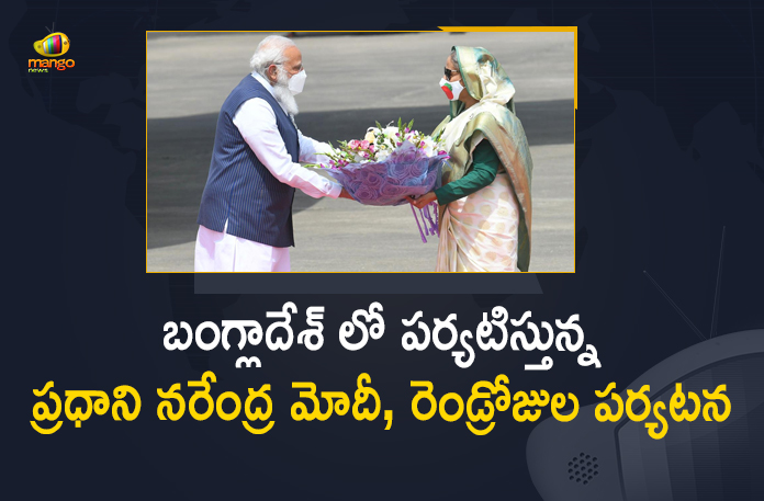 ప్రధానమంత్రి నరేంద్ర మోదీ శుక్రవారం ఉదయం బంగ్లాదేశ్ పర్యటనకు వెళ్లారు. డాకాలోని హజ్రత్ షాజలాల్ అంతర్జాతీయ విమానాశ్రయానికి చేరుకున్న ప్రధాని మోదీకి బంగ్లాదేశ్ దేశ ప్రధాని షేక్ హసీనా స్వాగతం పలికారు. మార్చి 26, 27 తేదీల్లో రెండ్రోజుల పాటుగా ప్రధాని బంగ్లాదేశ్ లో పర్యటించనున్నారు. ఈ పర్యటనలో భాగంగా ఈ రోజు మధ్యాహ్నం జరిగే బంగ్లాదేశ్ స్వాతంత్య్ర దినోత్సవ కార్యక్రమానికి ప్రధాని మోదీ గౌరవ అతిథిగా హాజరు కానున్నారు.