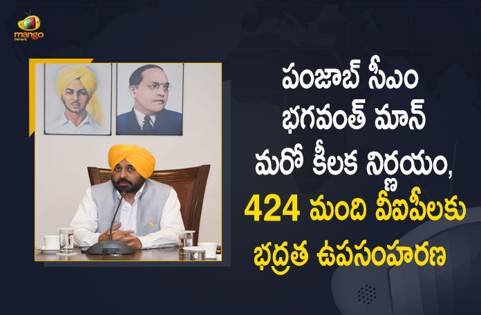 Punjab CM Bhagwant Mann Key Decision Govt Orders to Withdraw 424 VIPs Security Cover, Punjab Govt Orders to Withdraw 424 VIPs Security Cover, Punjab CM Bhagwant Mann Key Decision, Withdraw 424 VIPs Security Cover, 424 VIPs Security Cover, Punjab CM Bhagwant Mann Key Decision On VIPs Security Cover, CM Bhagwant Mann Key Decision On VIPs Security Cover, Bhagwant Mann Key Decision On VIPs Security Cover, Punjab CM Bhagwant Mann, Punjab CM, Bhagwant Mann, VIPs Security Cover, Punjab government To withdraws security cover provided to 424 dignitaries, 424 dignitaries security cover News, 424 dignitaries security cover Latest News, 424 dignitaries security cover Latest Updates, 424 dignitaries security cover Live Updates, Mango News, Mango News Telugu,