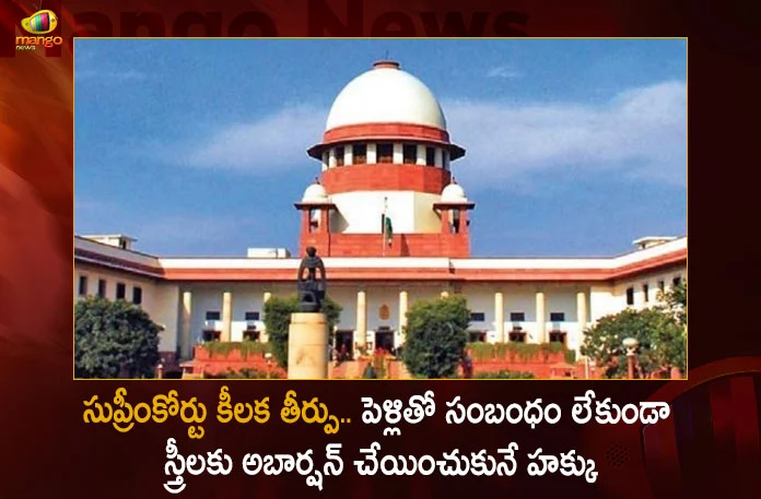 సుప్రీంకోర్టు కీలక తీర్పు ఇచ్చింది. పెళ్లితో సంబంధం లేకుండా స్త్రీలకు అబార్షన్ చేయించుకునే హక్కు ఉంటుందని పేర్కొంది. గురువారం జస్టిస్ డీవై చంద్రచూడ్, ఏఎస్ బొప్పన్న, జేబీ పర్దివాలాలతో కూడిన ధర్మాసనం ప్రెగ్నెన్సీకి సంబంధించిన మెడికల్ టర్మినేషన్ కేసులో విచారణ చేపట్టింది. ఈ సందర్భంగా ధర్మాసనం పలు కీలక వ్యాఖ్యలు చేసింది. పెళ్లితో సంబంధం లేకుండా అబార్షన్ చేయించుకునే హక్కు స్త్రీలకు ఉందని, పెళ్లి కాలేదన్న కారణంతో అబార్షన్ను అడ్డుకోలేరని సుప్రీంకోర్టు స్పష్టం చేసింది. చట్ట ప్రకారం ప్రతి మహిళ సురక్షితమైన అబార్షన్ చేసుకోవచ్చని, మెడికల్ టెర్మినేషన్ ఆఫ్ ప్రెగ్నెన్సీ చట్టం ప్రకారం అవివాహిత స్త్రీలకు అబార్షన్ చేసుకునే హక్కు ఉందని తెలిపింది.
