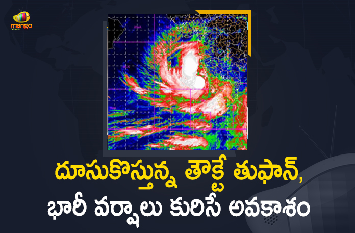 లక్ష్యదీప్ వద్ద అరేబియా సముద్రంలో ఏర్పడిన అల్పపీడనంతో తౌక్టే తుఫాన్ దూసుకొస్తోంది. మరో ఆరు గంటల్లో తౌక్టే తుఫాన్ తీవ్రమైన తుఫానుగా, తర్వాత 12 గంటలలో చాలా తీవ్రమైన తుఫానుగా మారే అవకాశం ఉందని భారత వాతావరణ శాఖ కార్యాలయం వెల్లడించింది. ఇక మే 18, మంగళవారం మధ్యాహ్నం లేదా సాయంత్రం సమయంలో ఉత్తర-వాయువ్య దిశగా వెళ్లి పోర్బందర్ మరియు నాలియా మధ్య గుజరాత్ లో తీరాన్ని తాకవచ్చని తెలిపారు. ఈ తుపాను ప్రభావంతో ఈ మూడు రోజుల్లో కేరళ, కర్ణాటక, గోవా, మహారాష్ట్ర, గుజరాత్, తమిళనాడులో రాష్ట్రాల్లోని కొన్ని ప్రాంతాల్లో భారీ నుండి అతి భారీ వర్షాలు కురిసే అవకాశం ఉందని చెప్పారు.