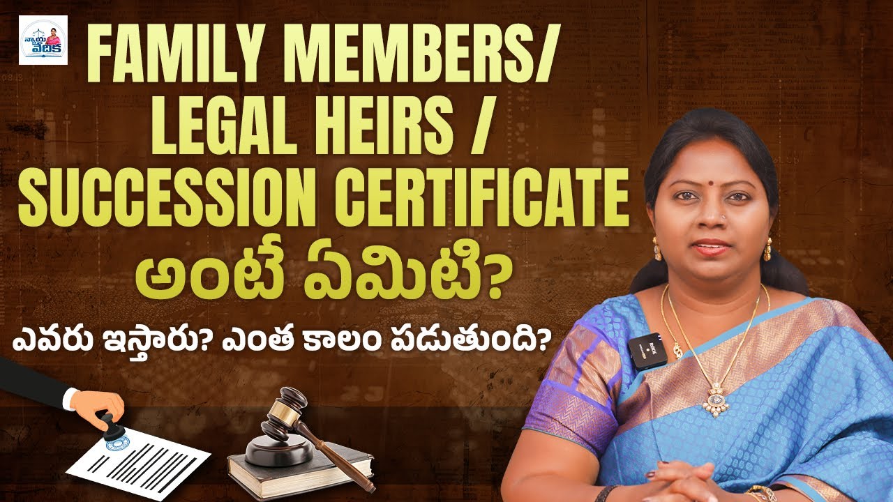 సామాజిక కార్యకర్త, ప్రముఖ న్యాయవాది అయిన ఆకుల రమ్య.. లా అండ్ ఆర్డర్, భారతీయ చట్టాలు, చట్టపరమైన మరియు చట్టవిరుద్ధమైన కార్యకలాపాలకు సంబంధించిన అనేక అంశాల గురించి ‘న్యాయవేదిక’ పేరుతో తన యూట్యూబ్ ఛానల్లో ఎపిసోడ్స్ వారీగా వివరణ ఇస్తున్నారు. అందులో భాగంగా ఈ ఎపిసోడ్లో ‘Family Members/ Legal Heirs / Succession Certificate అంటే ఏమిటి?’ అనే అంశం గురించి వివరించారు. ఆ సర్టిఫికేట్ ఎవరు ఇస్తారు? అది రావడానికి ఎంత సమయం పడుతుందనేది చెప్పారు. ఈ అంశానికి సంబంధించి మరిన్ని వివరాలు తెలుసుకునేందుకు ఈ ఎపిసోడ్ను పూర్తిగా వీక్షించండి.