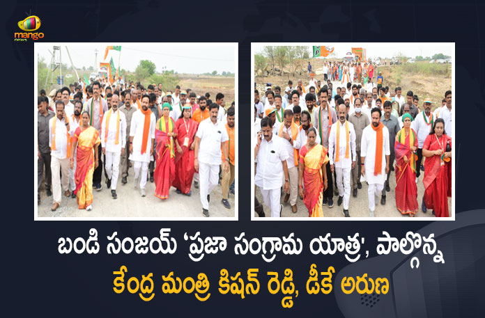తెలంగాణ బీజేపీ రాష్ట్ర అధ్యక్షుడు, కరీంనగర్ ఎంపీ బండి సంజయ్ కుమార్ రాష్ట్రంలో రెండో విడత ‘ప్రజా సంగ్రామ యాత్ర’ను శుక్రవారం అలంపూర్ శక్తిపీఠం నుంచి ప్రారంభించిన విషయం తెలిసిందే. తొలిరోజు యాత్రను ఇమ్మాపూర్ లో ముగించగా, రెండు రోజు అక్కడ నుంచి బైరాపూర్ క్రాస్ రోడ్స్, బైరాపూర్ జి, లింగవాయి, బూడిదపాడు, ఉండవల్లి, చిన్న ఆముదాయాల పాడు, తక్షశిల మీదుగా ప్రగటూర్ వరకు సాగనుంది. బండి సంజయ్ రెండో రోజు ప్రజాసంగ్రామ యాత్రలో కేంద్ర మంత్రి కిషన్ రెడ్డి, బీజేపీ జాతీయ ఉపాధ్యక్షురాలు డీకే అరుణ సహా పలువురు నాయకులు పాల్గొన్నారు. ప్రజల కష్టాలు తెలుసుకుని వారికి భరోసా కల్పించేందుకు బీజేపీ సిద్ధంగా ఉంటుందని ఈ సందర్భంగా బండి సంజయ్ పేర్కొన్నారు.