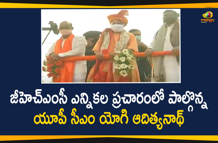 జీహెచ్ఎంసీ ఎన్నికల ప్రచారం తుదిదశకు చేరుకోవడంతో బీజేపీ రాష్ట్రస్థాయి నాయకులతో పాటుగా జాతీయ నేతలు కూడా ప్రచారంలో పాల్గొంటున్నారు. అందులో భాగంగా బీజేపీ కీలక నేత, ఉత్తరప్రదేశ్ ముఖ్యమంత్రి యోగి ఆదిత్యనాథ్ ఈ రోజు హైదరాబాద్ నగరానికి విచ్చేశారు. హైదరాబాద్ చేరుకున్న సీఎం యోగి ఆదిత్యనాథ్ కు పలువురు బీజేపీ నాయకులు ఘన స్వాగతం పలికారు. జీహెచ్ఎంసీ ఎన్నికల ప్రచారంలో భాగంగా ముందుగా కూకట్ పల్లి, శేరిలింగంపల్లి అసెంబ్లీ నియాజకవర్గాల పరిధిలోని సౌత్ ఇండియా షాపింగ్ మాల్, ఉషా ముళ్ళపూడి రోడ్, జీడిమెట్ల నుంచి తిరుమల బేకరీ ఎదురుగా ఆల్విన్ క్రాస్ రోడ్ వరకు రోడ్ షో నిర్వహిస్తున్నారు. అనంతరం హైదరాబాద్ పార్లమెంటరీ నియోజకవర్గ పరిధిలోని శాలిబండ, లాల్ దర్వాజా ప్రాంతంలోగల అల్కా థియేటర్ గ్రౌండ్ లో జరిగే బహిరంగ సభలో యూపీ సీఎం యోగి ఆదిత్యనాథ్ పాల్గొని ప్రసంగించనున్నారు.
